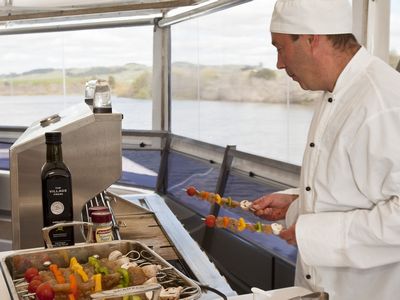 There is nothing more perfect than enjoying a fully catered cruise, with artfully created cuisine using the freshest locally produced ingredients as much as possible and a glass of award-winning New Zealand wine to complete the moment.